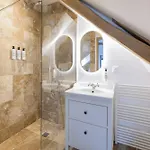Maison Castel A haven of peace near Deauville include un salottino e una zona pranzo, oltre a comfort come un asse e un ferro da stiro e un impianto di climatizzazione, nonché servizi multimediali come il Wi-Fi e un televisore. Gli elementi interni comprendono un divano e un caminetto. Questo luogo dispone di 5 bagni con una vasca da bagno, un bagno alla francese e una doccia. A disposizione c'è anche asciugacapelli, cuffie per la doccia e asciugamani.